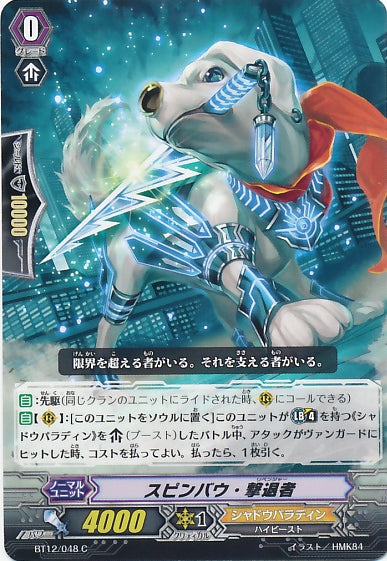 【自】:先駆(同じクランのユニットにライドされた時、(R)にコールできる)【自】【(R)】:[このユニットをソウルに置く]このユニットが【リミットブレイク】(4)を持つ《シャドウパラディン》を【ブースト】したバトル中、アタックがヴァンガードにヒットした時、コストを払ってよい。払ったら、1枚引く。