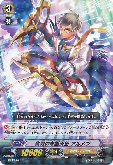 【永】【(V)/(R)】:あなたのターン中、あなたのダメージゾーンの表の「執刀の守護天使(オペレーション・セレスティアル) アルメン」1枚につき、このユニットのパワー+2000。