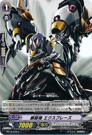 【自】【(R)】:このユニットがアタックした時、あなたのカード名に「鋼闘機」を含むヴァンガードがいるなら、そのバトル中、このユニットのパワー+3000。