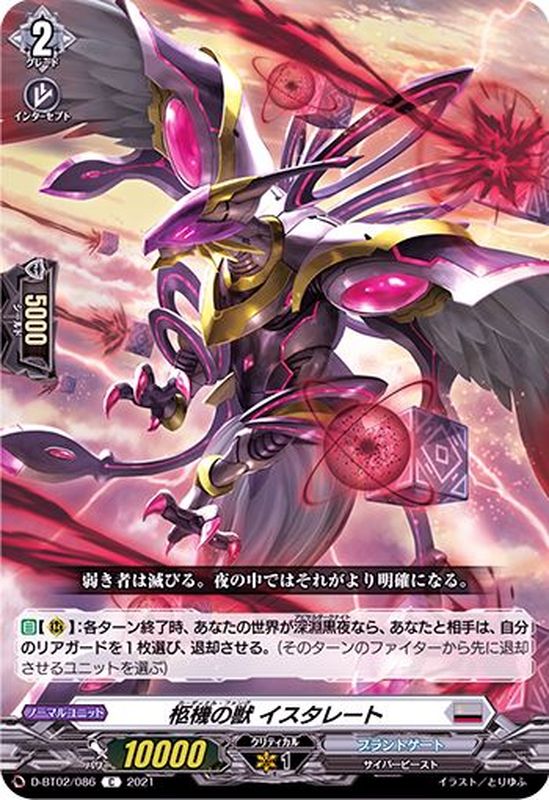 【自】【(R)】:各ターン終了時、あなたの世界が深淵黒夜なら、あなたと相手は、自分のリアガードを1枚選び、退却させる。(そのターンのファイターから先に退却させるユニットを選ぶ)