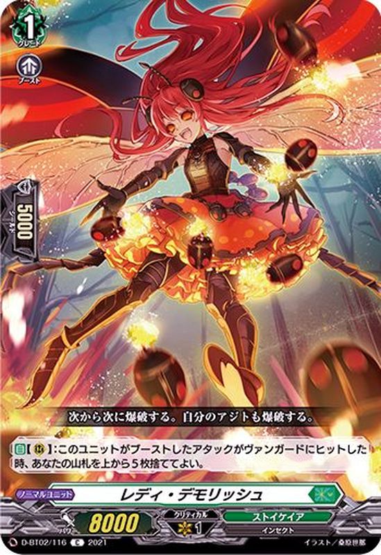 【自】【(R)】:このユニットがブーストしたアタックがヴァンガードにヒットした時、あなたの山札を上から5枚捨ててよい。