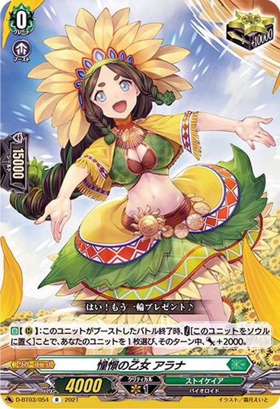 【自】【(R)】:このユニットがブーストしたバトル終了時、【コスト】[このユニットをソウルに置く]ことで、あなたのユニットを1枚選び、そのターン中、パワー+2000。