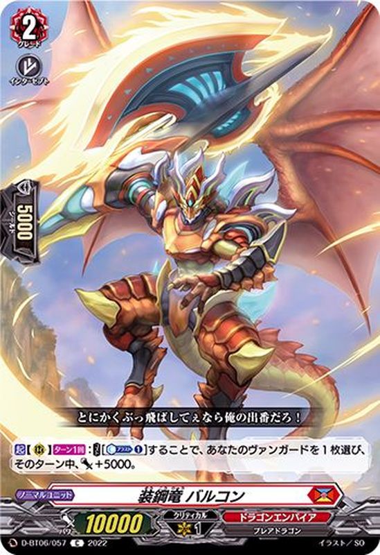 【起】【(R)】【ターン1回】:【コスト】[【カウンターブラスト】(1)]することで、あなたのヴァンガードを1枚選び、そのターン中、パワー+5000。