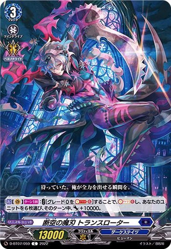 【起】【(V)】【ターン1回】:【コスト】[グレード0を【ソウルブラスト】(6)]することで、【ソウルチャージ】(6)し、あなたのユニットを6枚選び、そのターン中、パワー+10000。