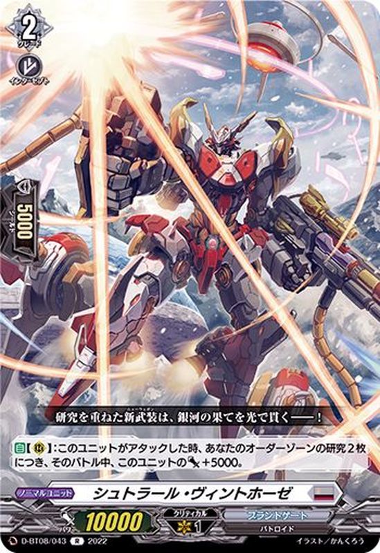 【自】【(R)】:このユニットがアタックした時、あなたのオーダーゾーンの研究2枚につき、そのバトル中、このユニットのパワー+5000。