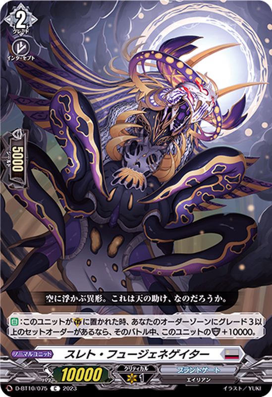 【自】:このユニットが(G)に置かれた時、あなたのオーダーゾーンにグレード3以上のセットオーダーがあるなら、そのバトル中、このユニットのシールド+10000。