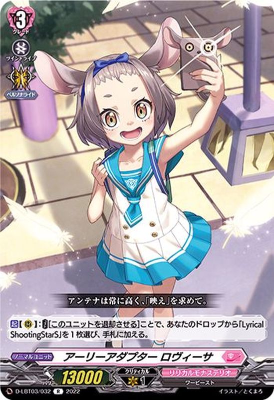 【起】【(R)】:【コスト】[このユニットを退却させる]ことで、あなたのドロップから「Lyrical ShootingStarS」を1枚選び、手札に加える。