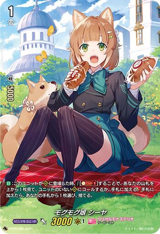【自】:このユニットが(R)に登場した時、【コスト】[【ソウルブラスト】(1)]することで、あなたの山札を上から1枚見て、ユニットのいない(R)にコールするか、手札に加える。手札に加えたら、あなたの手札から1枚選び、捨てる。