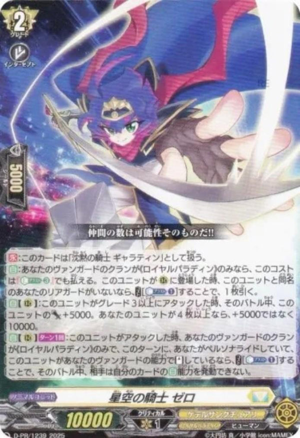 【自】:あなたのヴァンガードのクランが《ロイヤルパラディン》のみなら、このコストは『【エネルギーブラスト】(3)』でも払える。このユニットが(R)に登場した時、このユニットと同名のあなたのリアガードがいないなら、【コスト】[【カウンターブラスト】(1)]することで、1枚引く。