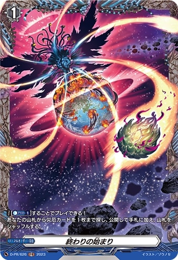 【コスト】[【カウンターブラスト】(1)]することでプレイできる!あなたの山札から災厄カードを1枚まで探し、公開して手札に加え、山札をシャッフルする。