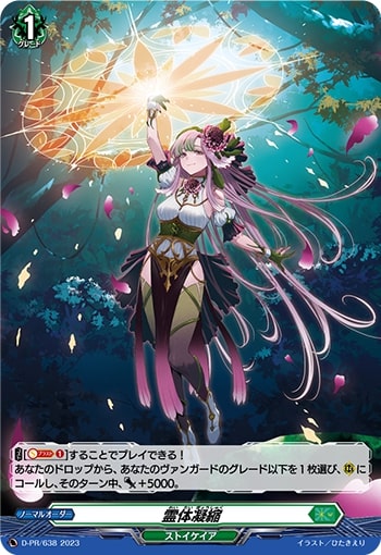【コスト】[【ソウルブラスト】(1)]することでプレイできる!あなたのドロップから、あなたのヴァンガードのグレード以下を1枚選び、(R)にコールし、そのターン中、パワー+5000。