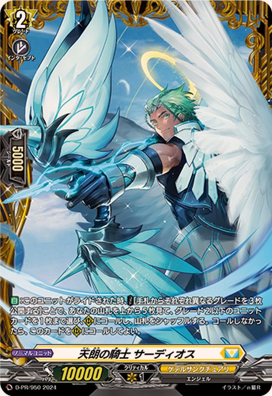 【自】:このユニットがライドされた時、【コスト】[手札からそれぞれ異なるグレードを3枚公開する]ことで、あなたの山札を上から5枚見て、グレード2以下のユニットカードを1枚まで選び、(R)にコールし、山札をシャッフルする。コールしなかったら、このカードを(R)にコールしてよい。