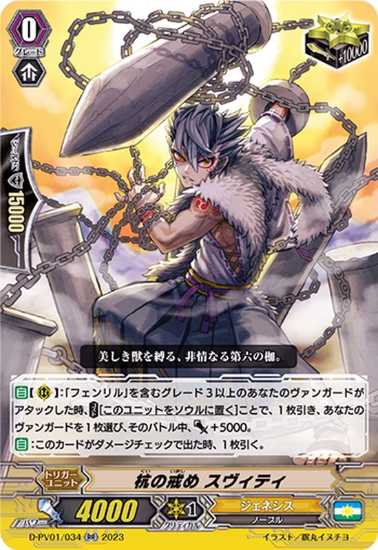 【自】【(R)】:「フェンリル」を含むグレード3以上のあなたのヴァンガードがアタックした時、【コスト】[このユニットをソウルに置く]ことで、1枚引き、あなたのヴァンガードを1枚選び、そのバトル中、パワー+5000。【自】:このカードがダメージチェックで出た時、1枚引く。