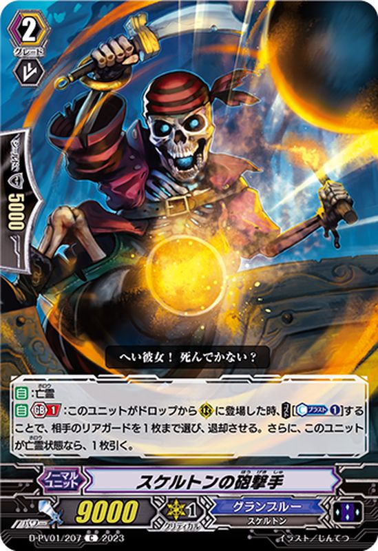 【自】:亡霊【自】【Gブレイク】(1):このユニットがドロップから(R)に登場した時、【コスト】[【カウンターブラスト】(1)]することで、相手のリアガードを1枚まで選び、退却させる。さらに、このユニットが亡霊状態なら、1枚引く。