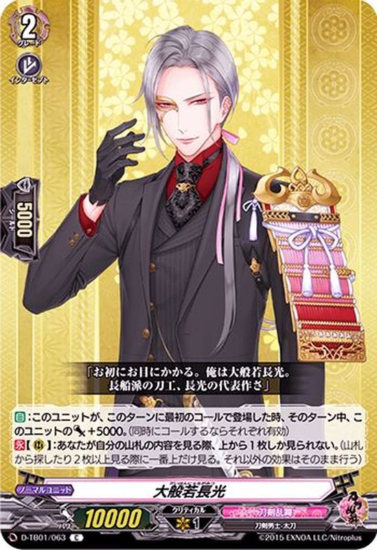 フレバーテキスト:「お初にお目にかかる。俺は大般若長光。長船派の刀工、長光の代表作さ」