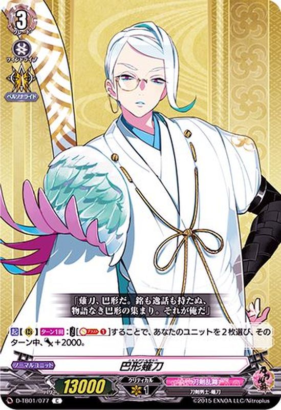 フレバーテキスト:「薙刀、巴形だ。銘も逸話も持たぬ、物語なき巴形の集まり。それが俺だ」