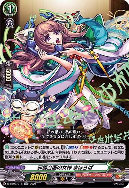 【自】:このユニットが(R)に登場した時、【コスト】[【カウンターブラスト】(1),【ソウルブラスト】(1)]することで、あなたの山札から「まほろばの国の女王 卑弥呼」を1枚まで探し、このユニットと同じ縦列の(R)にコールし、山札をシャッフルする。