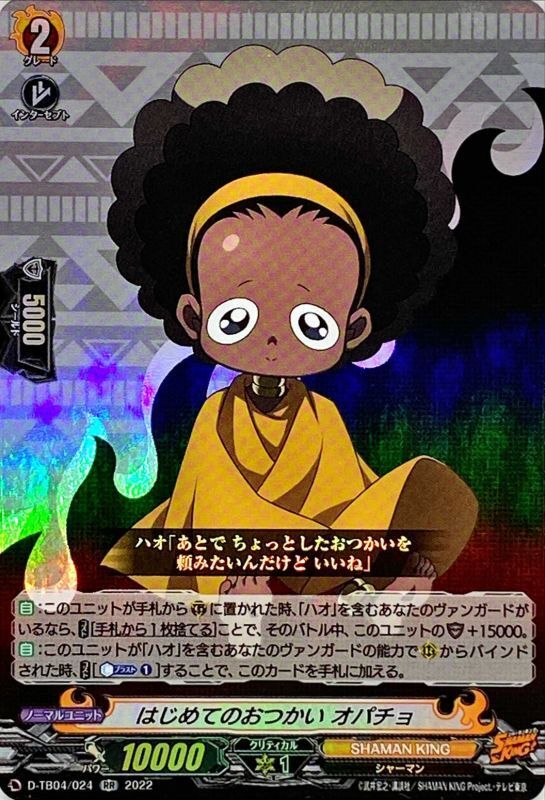 【自】:このユニットが手札から(G)に置かれた時、「ハオ」を含むあなたのヴァンガードがいるなら、【コスト】[手札から1枚捨てる]ことで、そのバトル中、このユニットのシールド+15000。【自】:このユニットが「ハオ」を含むあなたのヴァンガードの能力で(R)からバインドされた時、【コスト】[【カウンターブラスト】(1)]することで、このカードを手札に加える。
