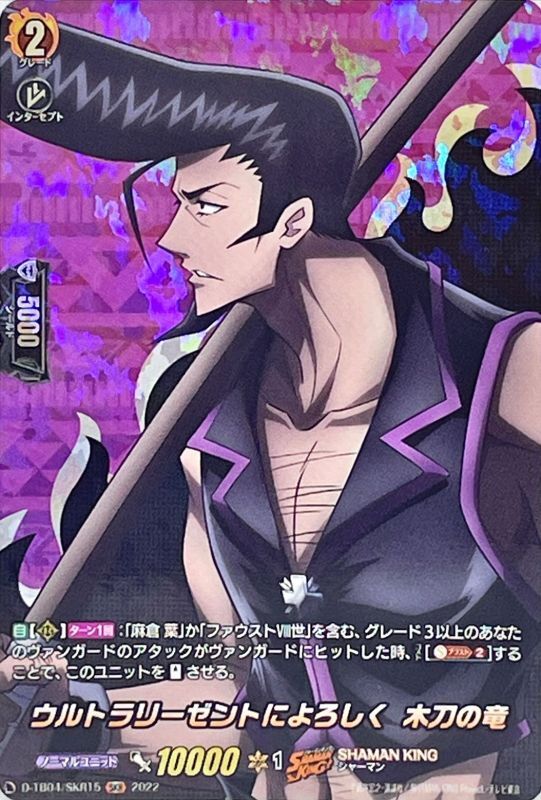 【自】【(R)】【ターン1回】:「麻倉 葉」か「ファウストⅧ世」を含む、グレード3以上のあなたのヴァンガードのアタックがヴァンガードにヒットした時、【コスト】[【ソウルブラスト】(2)]することで、このユニットを【スタンド】させる。