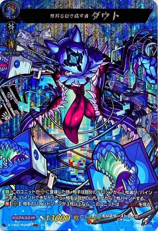 【自】:このユニットが(R)に登場した時、相手は自分のドロップから1枚選び、バインドする。 バインドできなかったら、相手は自分の山札を上から1枚バインドする。【永】【(R)】:相手のバインドゾーンが3枚以上なら、このユニットは『ブースト』を得る。