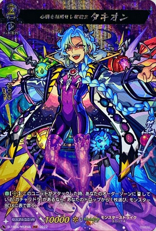 【自】【(R)】:このユニットがアタックした時、あなたのオーダーゾーンに【スタンド】している「ガチャリドラ」があるなら、あなたのドロップから1枚選び、モンスターBOXに表で置く。