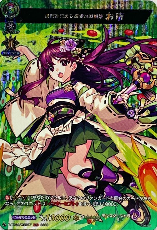 【永】【(R)/(G)】:あなたのソウルに、あなたのヴァンガードと同名のカードがあるなら、このユニットは『インターセプト』を得て、シールド+10000。