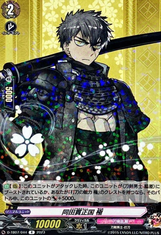 【自】【(R)】:このユニットがアタックした時、このユニットが〈刀剣男士-脇差〉にブーストされているか、あなたが「打刀の能力 極」のクレストを持つなら、そのバトル中、このユニットのパワー+5000。