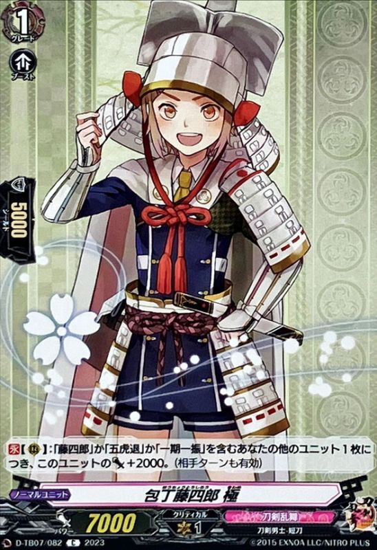 【永】【(R)】:「藤四郎」か「五虎退」か「一期一振」を含むあなたの他のユニット1枚につき、このユニットのパワー+2000。(相手ターンも有効)