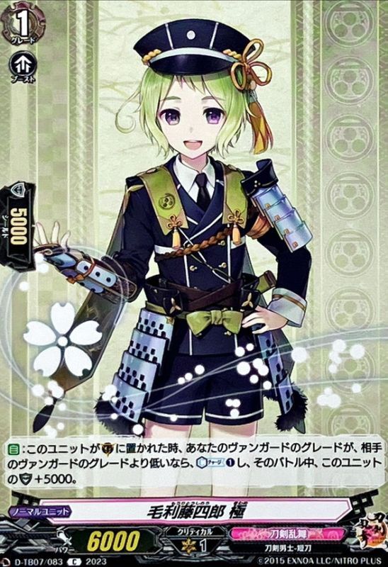 【自】:このユニットが(G)に置かれた時、あなたのヴァンガードのグレードが、相手のヴァンガードのグレードより低いなら、【カウンターチャージ】(1)し、そのバトル中、このユニットのシールド+5000。