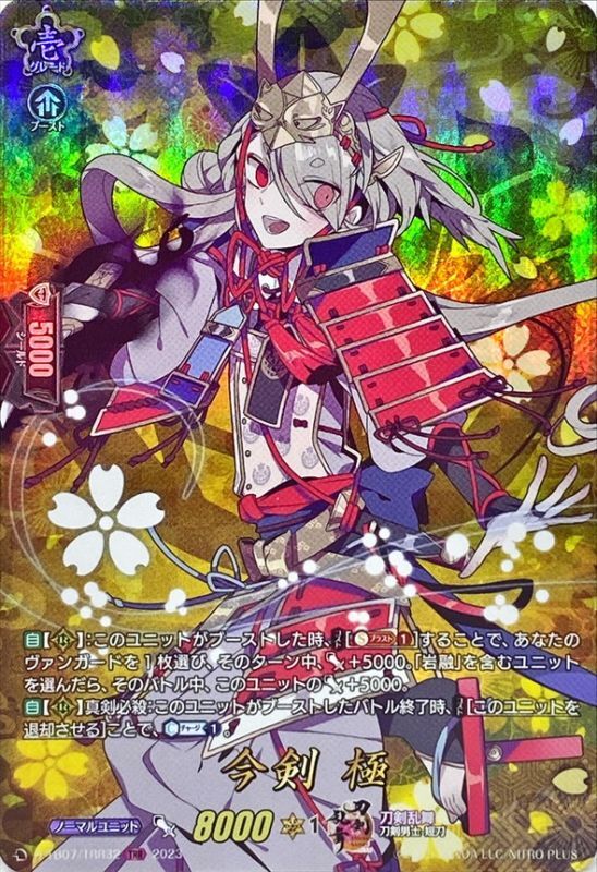 【自】【(R)】:このユニットがブーストした時、【コスト】[【ソウルブラスト】(1)]することで、あなたのヴァンガードを1枚選び、そのターン中、パワー+5000。「岩融」を含むユニットを選んだら、そのバトル中、このユニットのパワー+5000。【自】【(R)】真剣必殺:このユニットがブーストしたバトル終了時、【コスト】[このユニットを退却させる]ことで、【カウンターチャージ】(1)。