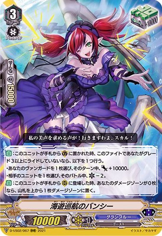 【自】:このユニットが手札から(G)に置かれた時、このファイトであなたがグレード3以上にライドしていないなら、以下を1つ行う。・あなたのヴァンガードを1枚選び、そのターン中、パワー+10000。・相手のユニットを1枚選び、そのバトル中、クリティカル-2。【自】:このユニットが手札から(R)に登場した時、あなたのダメージゾーンが0枚なら、山札を上から1枚ダメージゾーンに置く。