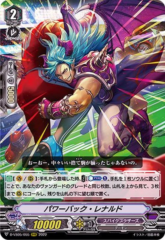 【自】【(V)/(R)】:手札から登場した時、【コスト】[【カウンターブラスト】(1),手札を1枚ソウルに置く]ことで、あなたのヴァンガードのグレードと同じ枚数、山札を上から見て、3枚まで(R)にコールし、残りを山札の下に望む順で置く。