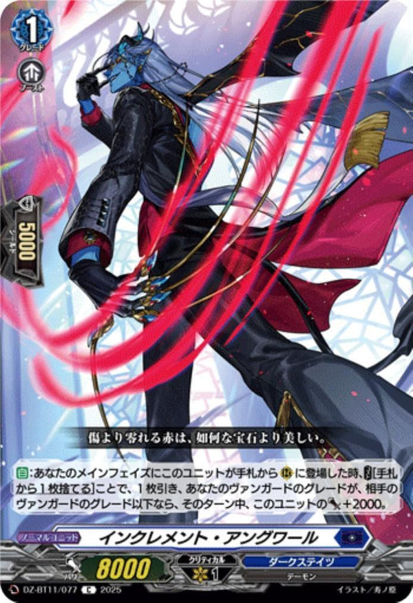 【自】:あなたのメインフェイズにこのユニットが手札から(R)に登場した時、【コスト】[手札から1枚捨てる]ことで、1枚引き、あなたのヴァンガードのグレードが、相手のヴァンガードのグレード以下なら、そのターン中、このユニットのパワー+2000。
