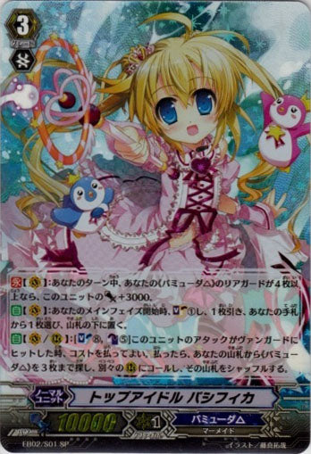 【永】【(V)】:あなたのターン中、あなたの《バミューダ△》のリアガードが4枚以上なら、このユニットのパワー+3000。【自】【(V)】:あなたのメインフェイズ開始時、【ソウルチャージ】(1)し、1枚引き、あなたの手札から1枚選び、山札の下に置く。【自】【(V)/(R)】:[【ソウルブラスト】(8),【カウンターブラスト】(5)]このユニットのアタックがヴァンガードにヒットした時、コストを払ってよい。払ったら、あなたの山札から《バミューダ△》を3枚まで探し、別々の(R)にコールし、その山札をシャッフルする。