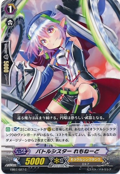 【自】:[【ソウルブラスト】(2)]このユニットが(R)に登場した時、あなたの《オラクルシンクタンク》のヴァンガードがいるなら、コストを払ってよい。払ったら、あなたのダメージゾーンから2枚まで選び、表にする。
