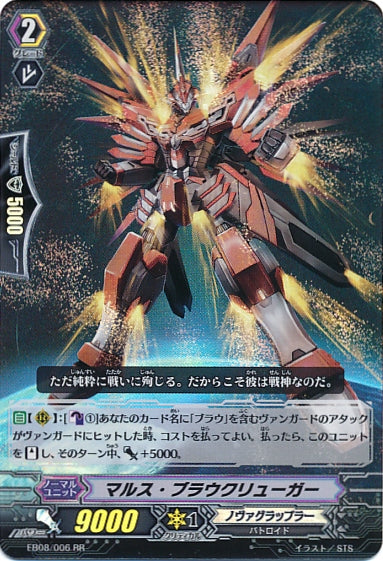 【自】【(R)】:[【カウンターブラスト】(1)]あなたのカード名に「ブラウ」を含むヴァンガードのアタックがヴァンガードにヒットした時、コストを払ってよい。払ったら、このユニットを【スタンド】し、そのターン中、パワー+5000。