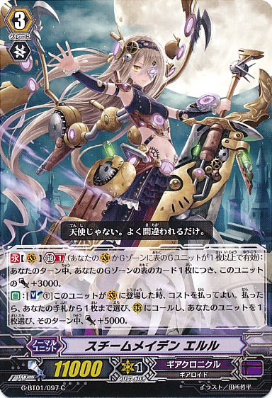 【永】【(V)】【Gブレイク】(1)(あなたの(V)かGゾーンに表のGユニットが1枚以上で有効):あなたのターン中、あなたのGゾーンの表のカード1枚につき、このユニットのパワー+3000。【自】:[【ソウルブラスト】(1)]このユニットが(V)に登場した時、コストを払ってよい。払ったら、あなたの手札から1枚まで選び、(R)にコールし、あなたのユニットを1枚選び、そのターン中、パワー+5000。