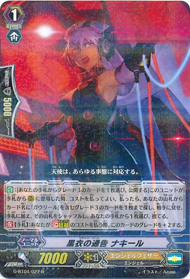 【自】:[あなたの手札からグレード3のカードを1枚選び、公開する]このユニットが手札から(R)に登場した時、コストを払ってよい。払ったら、あなたの山札からカード名に「ガウリール」を含むグレード3のカードを1枚まで探し、相手に見せ、手札に加え、その山札をシャッフルし、あなたの手札から1枚選び、捨てる。【永】【手札】:あなたが【超越】のコストを払う際、このカードのグレードを+2する。