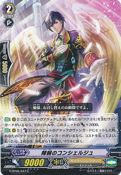 【自】【(R)】:このユニットがアタックした時、あなたの「ツクヨミ」を含むヴァンガードがいるなら、そのバトル中、このユニットのパワー+2000。【自】【(R)】:[【カウンターブラスト】(1)]このユニットのアタックがヴァンガードにヒットした時、あなたの「ツクヨミ」を含むヴァンガードがいるなら、コストを払ってよい。払ったら、2枚引き、手札から1枚選び、ソウルに置く。