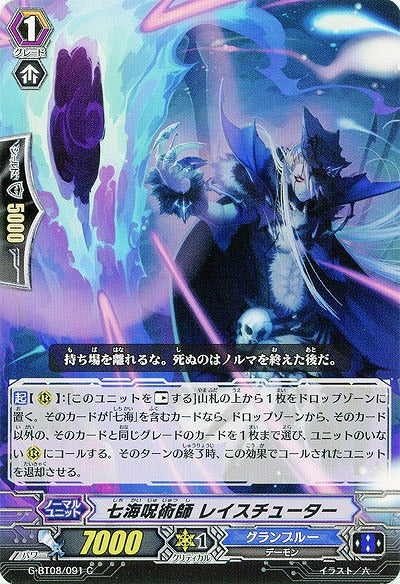 【起】【(R)】:[このユニットを【レスト】する]山札の上から1枚をドロップゾーンに置く。そのカードが「七海」を含むカードなら、ドロップゾーンから、そのカード以外の、そのカードと同じグレードのカードを1枚まで選び、ユニットのいない(R)にコールする。そのターンの終了時、この効果でコールされたユニットを退却させる。