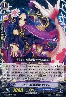 【自】【(R)】:[【カウンターブラスト】(1)-カード名に「Duo」を含むカード]このユニットが【ブースト】したバトル中、アタックがヴァンガードにヒットした時、コストを払ってよい。払ったら、他のあなたのカード名に「Duo」を含むリアガードを1枚選び、手札に戻し、あなたの山札からそのユニットと同名のカードを1枚まで探し、相手に見せ、手札に加え、その山札をシャッフルする。
