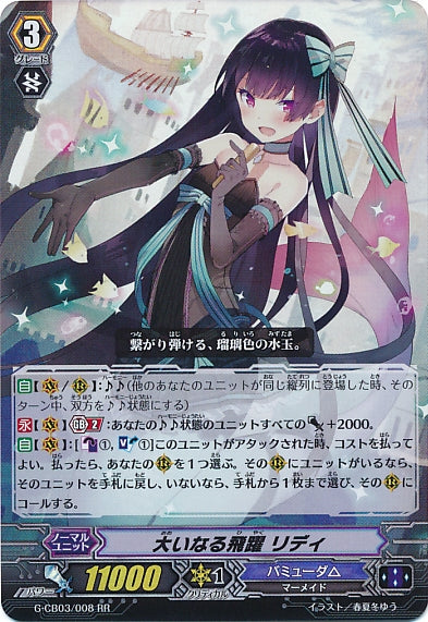 【自】【(V)/(R)】:♪♪(他のあなたのユニットが同じ縦列に登場した時、そのターン中、双方を♪♪状態にする)【永】【(V)】【Gブレイク】(2):あなたの♪♪状態のユニットすべてのパワー+2000。【自】【(V)】:[【カウンターブラスト】(1),【ソウルブラスト】(1)]このユニットがアタックされた時、コストを払ってよい。払ったら、あなたの(R)を1つ選ぶ。その(R)にユニットがいるなら、そのユニットを手札に戻し、いないなら、手札から1枚まで選び、その(R)にコールする。