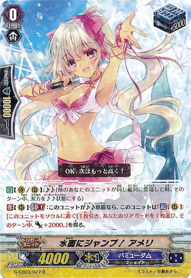 【自】【(V)/(R)】:♪♪(他のあなたのユニットが同じ縦列に登場した時、そのターン中、双方を♪♪状態にする)【永】【(R)】【Gブレイク】(1):このユニットが♪♪状態なら、このユニットは『【起】【(R)】:[このユニットをソウルに置く]1枚引き、あなたのリアガードを1枚選び、そのターン中、パワー+2000。』を得る。