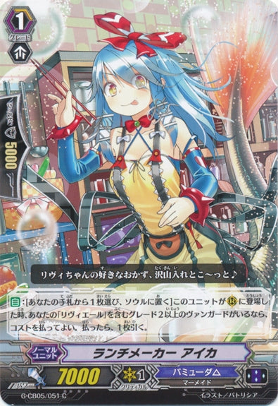 【自】:[あなたの手札から1枚選び、ソウルに置く]このユニットが(R)に登場した時、あなたの「リヴィエール」を含むグレード2以上のヴァンガードがいるなら、コストを払ってよい。払ったら、1枚引く。