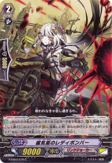 【自】:[あなたの手札からグレード1以上のカードを1枚選び、(R)に呪縛カードとして置く]このユニットが(R)に登場した時、あなたのヴァンガードが〈メサイア〉なら、コストを払ってよい。払ったら、1枚引く。