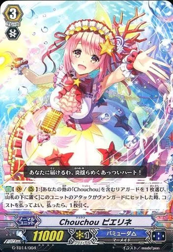 【自】【(V)/(R)】:[あなたの他の「Chouchou」を含むリアガードを1枚選び、山札の下に置く]このユニットのアタックがヴァンガードにヒットした時、コストを払ってよい。払ったら、1枚引く。