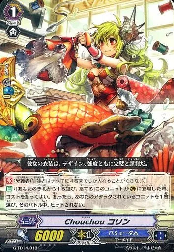 【永】:守護者(守護者はデッキに4枚までしか入れることができない)【自】:[あなたの手札から1枚選び、捨てる]このユニットが(G)に登場した時、コストを払ってよい。払ったら、あなたのアタックされているユニットを1枚選び、そのバトル中、ヒットされない。