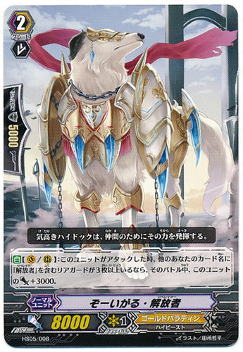 【自】【(V)/(R)】:このユニットがアタックした時、他のあなたのカード名に「解放者」を含むリアガードが3枚以上いるなら、そのバトル中、このユニットのパワー+3000。