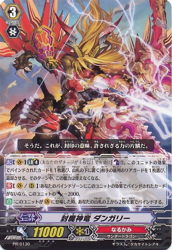 【起】【(V)】【リミットブレイク】(4)(あなたのダメージが4枚以上で有効):[【カウンターブラスト】(1),このユニットの効果でバインドされたカードを1枚選び、山札の下に置く]相手の前列のリアガードを1枚選び、退却させる。そのターン中、この能力は使えなくなる。【永】【(V)/(R)】:あなたのバインドゾーンにこのユニットの効果でバインドされたカードがないなら、このユニットのパワー-2000。【自】:このユニットが(V)に登場した時、あなたの山札の上から2枚を表でバインドする。