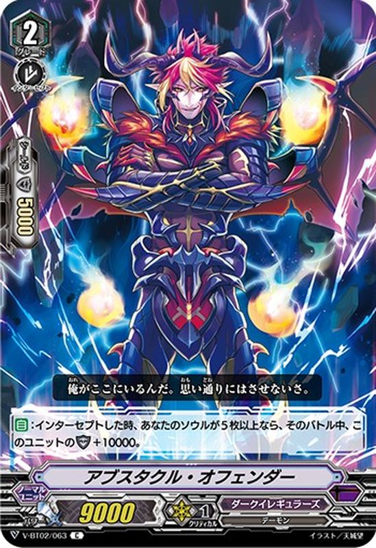【自】:インターセプトした時、あなたのソウルが5枚以上なら、そのバトル中、このユニットのシールド+10000。